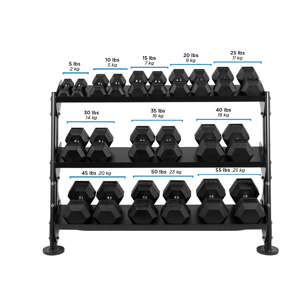 - Fits 5-55 lbs. Hex Dumbbells only
